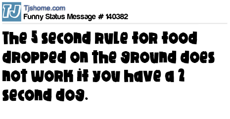 - # 166476 That 5 second rule regarding dropped food doesn't mean much when you have a 2 second dog.