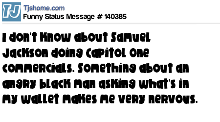 - # 164392 I don't know about these Capital One commercials with Samuel L. Jackson. There's something about an angry black man asking "What's in your wallet?" that scares me.