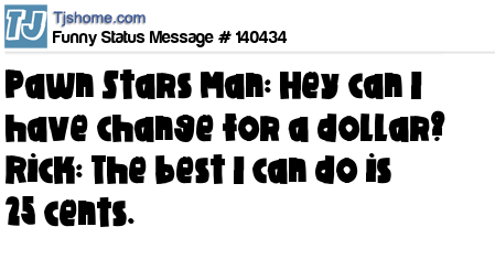 X says Pawn Stars Man: Hey can I have change for a dollar? Rick: The best I can do is 25 cents.