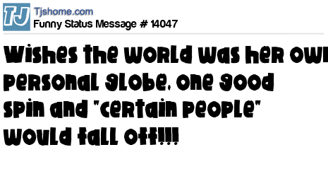 X wishes the world was her own personal globe, one good spin and "certain people" would fall off!!!