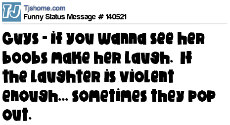 X says Guys - if you wanna see her boobs make her laugh. If the laughter is violent enough... sometimes they pop out.