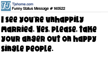 X says I see you're unhappily married. Yes, please, take your anger out on happy single people.