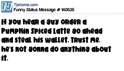 X says If you hear a guy order a Pumpkin Spiced Latte go ahead and steal his wallet. Trust me, he's not gonna do anything about it.
