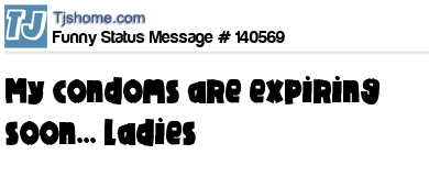 - # 105196 Don't worry ladies - I wear condoms on my fingers when I upd@te my st@tus so you won't get pregnant.