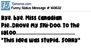 X Bye, bye, Miss Canadian Pie,,,Drove my Ski-Doo, To the igloo.................................................. *This idea was stupid,, Sorry*