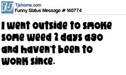 X says I went outside to smoke some weed 2 days ago and haven't been to work since.