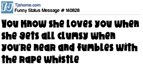 X says You know she loves you when she gets all clumsy when you're near and fumbles with the rape whistle