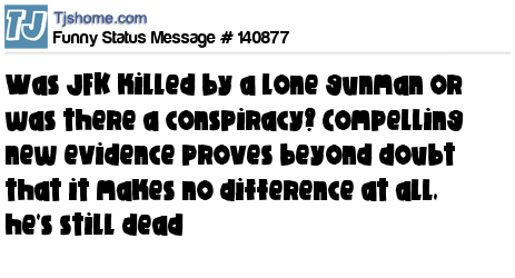 - # 162363 Was JFK killed by a lone gunman or was there a conspiracy? Compelling new evidence proves beyond doubt that it makes no difference at all. He's still dead.