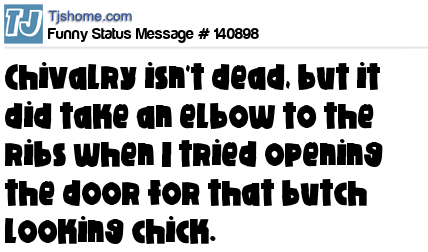 X says Chivalry isn't dead, but it did take an elbow to the ribs when I tried opening the door for that butch looking chick.
