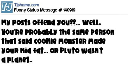 X My posts offend you??... Well,, You're probably the same person that said cookie monster made your kid fat... Or Pluto wasn't a planet..
