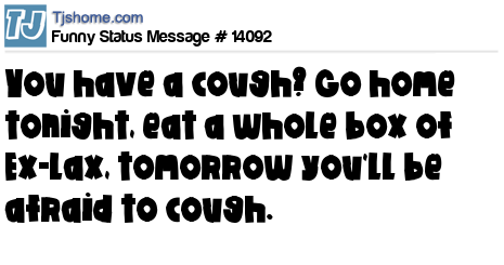 X says You have a cough? Go home tonight, eat a whole box of Ex-Lax, tomorrow you'll be afraid to cough.