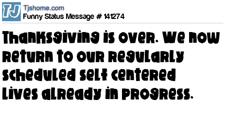 X says Thanksgiving is over. We now return to our regularly scheduled self centered lives already in progress.