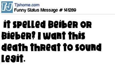 X says it spelled Beiber or Bieber? I want this death threat to sound legit.