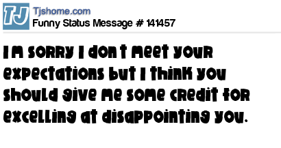 X says I’m sorry I don’t meet your expectations but I think you should give me some credit for excelling at disappointing you.