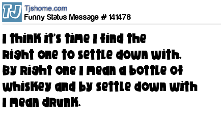 X says I think it's time I find the right one to settle down with. By right one I mean a bottle of whiskey and by settle down with I mean drunk.
