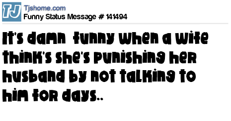 X says It's damn funny when a wife think's she's punishing her husband by not talking to him for days..