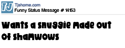 - # 170952 I fashioned a Snuggie out of several ShamWows. I look like an idiot, but I'm extremely absorbent.