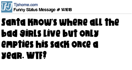 X says Santa know's where all the bad girls live but only empties his sack once a year. WTF?