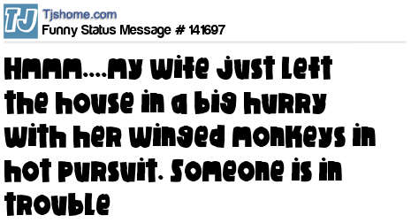 X Hmmm....my wife just left the house in a big hurry with her winged monkeys in hot pursuit. Someone is in trouble
