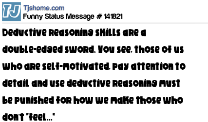 X says Deductive reasoning skills are a double-edged sword. You see, those of us who are self-motivated, pay attention to detail and use deductive reasoning must be punished for how we make those who don't "feel..."