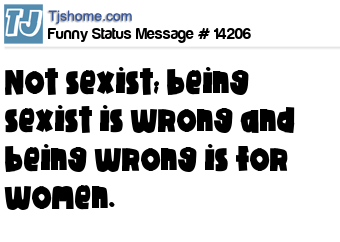 - # 88659 Just been told I'm not sexist. Being sexist is wrong and being wrong is for women.