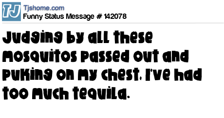X says Judging by all these mosquitos passed out and puking on my chest, I've had too much tequila.