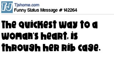 - # 148366 The quickest way to a man's heart is to saw through the thoracic cage of ribs and sternum, and then penetrate the pericardium