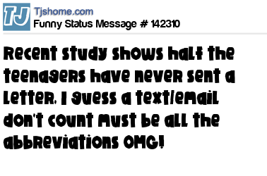 X says Recent study shows half the teenagers have never sent a letter, I guess a text/email don't count must be all the abbreviations OMG!