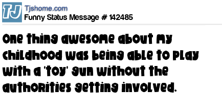 X says One thing awesome about my childhood was being able to play with a 'toy' gun without the authorities getting involved.