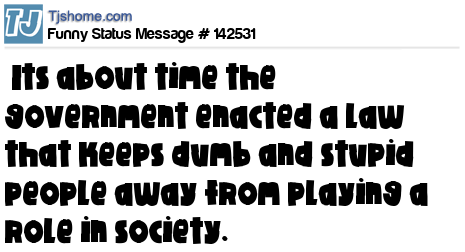 - # 142532 It's about time the government enacted a law that keeps dumb and stupid people away from playing any role in society.
