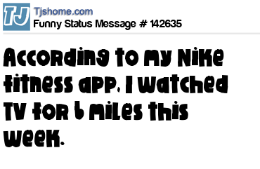 X says According to my Nike fitness app, I watched TV for 6 miles this week.