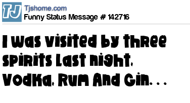 X says I was visited by three spirits last night, Vodka, Rum And Gin. . .