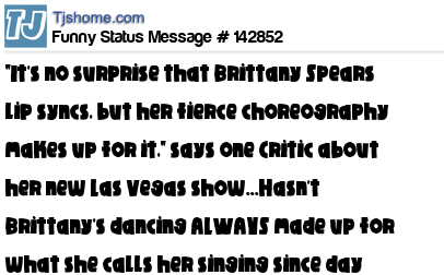 X "It's no surprise that Brittany Spears lip syncs, but her fierce choreography makes up for it," says one Critic about her new Las Vegas show...Hasn't Brittany's dancing ALWAYS made up for what she calls her singing since day one?