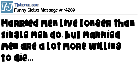 - # 139700 Statistics show that married men live a lot longer than single men. However married men are a lot more willing to die.