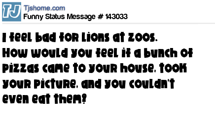 - # 151571 I feel bad for lions at zoos. How would you feel if a bunch of pizzas came to your house, took your picture, and you couldn’t even eat them?