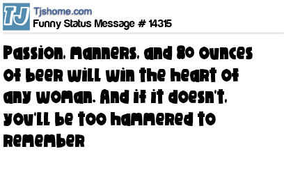 X says Passion, manners, and 80 ounces of beer will win the heart of any woman. And if it doesn't, you'll be too hammered to remember