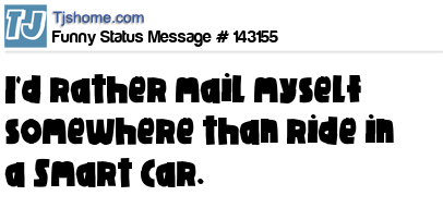 X says I'd rather mail myself somewhere than ride in a Smart Car.