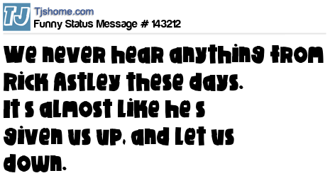 - # 191489 I wonder whatever happened to Rick Astley? He said he was never going give us up but he seems to have let us down. I'm hurt.