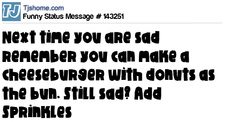 X says Next time you are sad remember you can make a cheeseburger with donuts as the bun. Still sad? Add Sprinkles