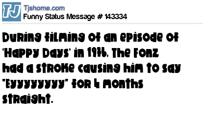 X says During filming of an episode of 'Happy Days' in 1976, The Fonz had a stroke causing him to say "Eyyyyyyyy" for 4 months straight.
