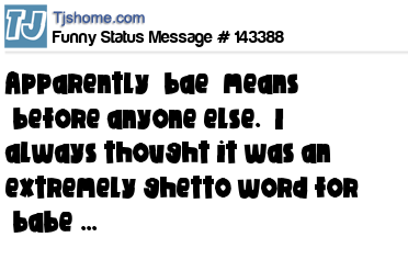 X Apparently “bae” means “before anyone else.” I always thought it was an extremely ghetto word for “babe”...