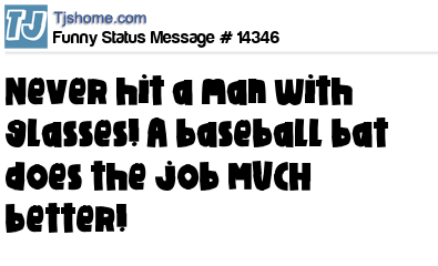 - # 32680 Never hit a man with glasses...try using a baseball bat.