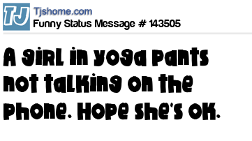X says A girl in yoga pants not talking on the phone. Hope she's ok.