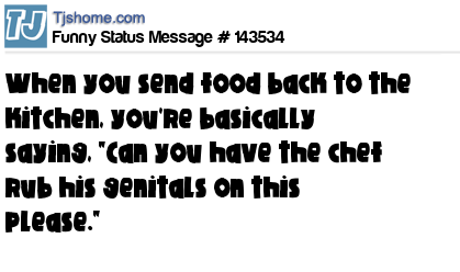 X says When you send food back to the kitchen, you're basically saying, "Can you have the chef rub his genitals on this please."