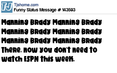 X  Manning Brady Manning Brady Manning Brady Manning Brady Manning Brady Manning Brady  There, now you don't need to watch ESPN this week.