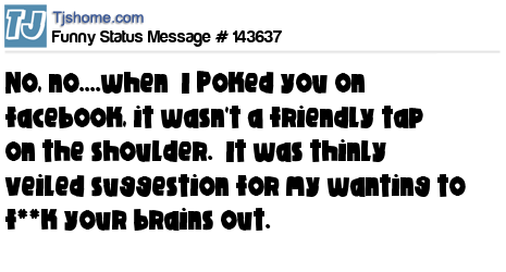 X No, no....when I Poked you on facebook, it wasn't a friendly tap on the shoulder. It was thinly veiled suggestion for my wanting to f**k your brains out.