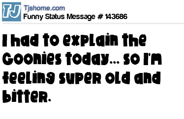 X says I had to explain the Goonies today... so I'm feeling super old and bitter.