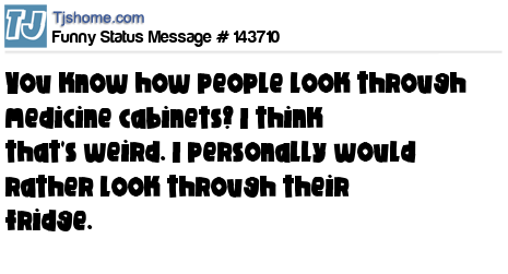 X says You know how people look through medicine cabinets? I think that's weird. I personally would rather look through their fridge.