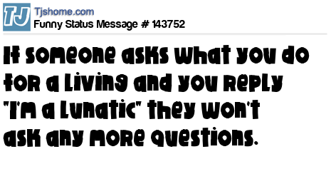 X says If someone asks what you do for a living and you reply "I'm a lunatic" they won't ask any more questions.
