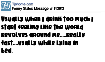 - # 143892 Usually when I drink too much I start feeling like the world revolves around me.....really fast and for. Mon